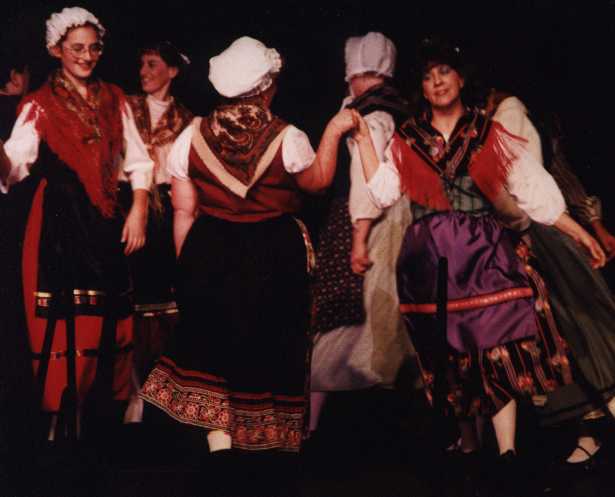 Carols are simple chain dances in which a linked line of dancers moved forwards, walking, running or skipping to their own singing. Other popular traditional dance types in France include Canarie, Forlane, Gavotte, Gigue, Menuet and Sarabande.
